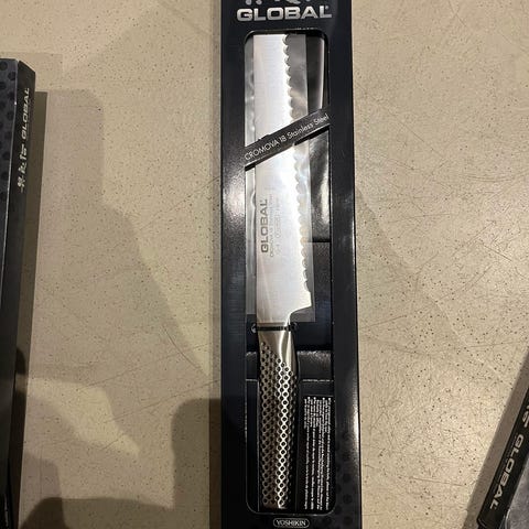 Sælger denne eksklusive forskærerkniv fra Global (model G-3). Kniven er aldrig brugt og fremstår helt ny i original emballage.