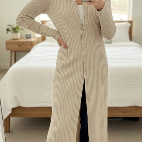 Cardigan, H&M, str. 38. Farve: Sort. Materiale: 100% viskose. Næsten som ny. Fin lang Cardigan / Overdel / Skjortekjole - Ja.! kan anvendes på flere måder. Længde ca. 110 cm. Måler rundt under ærmerne ca. 100 cm. Mulighed for at knappe ærmerne lidt op - ses på fotos. Må afhentes eller sendes forsikret med DAO + porto. Se gerne mine andre annoncer - mere kan købes med.