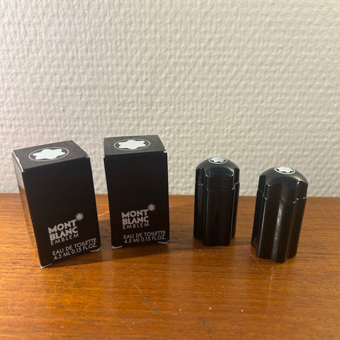 Montblanc Polished Ink og Extreme Leather parfume sæt. Sættet består af to flasker eau de toilette/eau de parfum i rektangulære glasflasker med sort låg. Polished Ink-varianten er markeret med “Dark Wood”, mens Extreme Leather-varianten er markeret med “Smoked Ink” på æskerne. Velegnet som duft til daglig brug eller særlige lejligheder. Flaskerne leveres i originale hvide Montblanc-æsker med sort etiket på forsiden.
