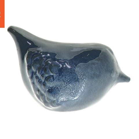 Figuren viser en sejlflyvende gråand med farverige vinger og detaljeret krop. Den er lavet af keramik.