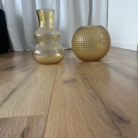 2 stk flotte høje, firkantede vaser. Farverne inkluderer dybe nuancer af rød, grøn og beige, hvilket giver et unikt, kunstnerisk udtryk. De er lavet af keramik.,Afhentes i:,Røde Kors Bellinge (461),Bemærk at mail, chat og beskeder ikke besvares, og varen skal købes på knappen "Gå til varen"