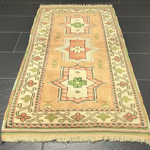 Tyrkisk håndvævet orientalsk tæppe af typen Kars Kazak, materiale uld på uld, størrelse 190 × 110 cm, fremstillet i slutningen af det 20. århundrede, i god stand med alder- og brugsspor. Klik på den blå "gå til varen" knap, for at købe eller byde på denne vare. Den samlede pris vil blive vist inden du afgiver dit bud.