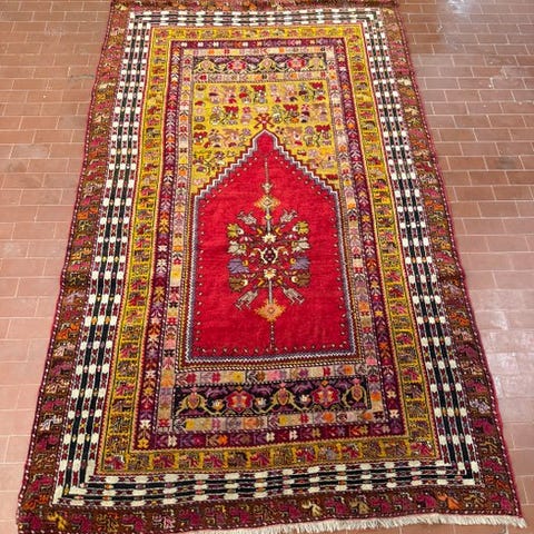 Tyrkisk håndlavet uld-uld tæppe, en enkelt del, mål 293 cm × 198 cm, lavet i midten af det 20. århundrede, generelt i god stand med tegn på ældning og slitage. Klik på den blå "gå til varen" knap, for at købe eller byde på denne vare. Den samlede pris vil blive vist inden du afgiver dit bud.
