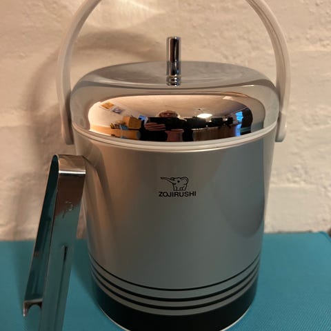Flot rød Isspand fra Japanske Peacock med original tang, lå og alt hvad der skal være I plast og let at transportere