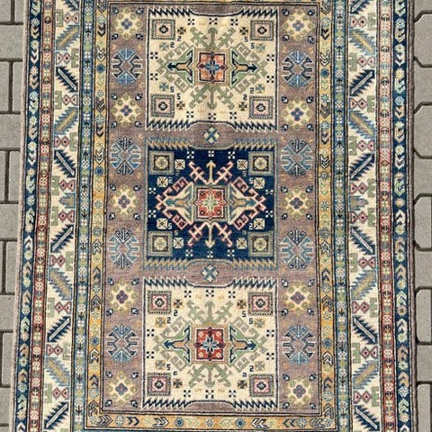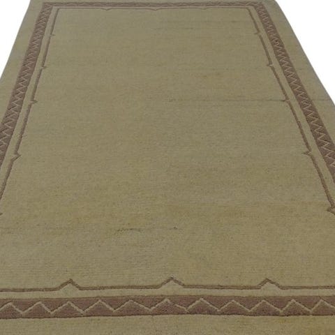 Et tæppe fra Indien, håndbundet med fin uld. Til dets konstruktion blev den tibetanske teknik anvendt i knudningen på vævet og i bomuldsn trædfiber.