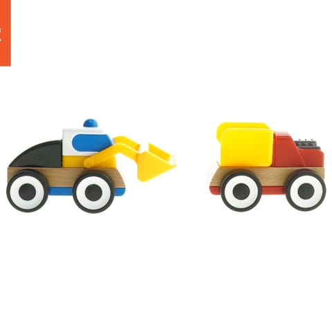 3 biler i træ. De 2 er fra IKEA, LILLABO ABS, designet af H. Johansson.