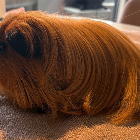 Der medfølger stamtavle fra Dansk Marsvineklub og en pose af hans vante foder.
