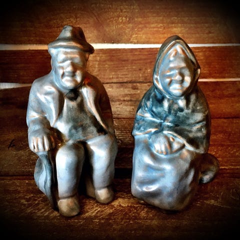 * Hun står med en krukke i hånden, hvor man kan isætte et