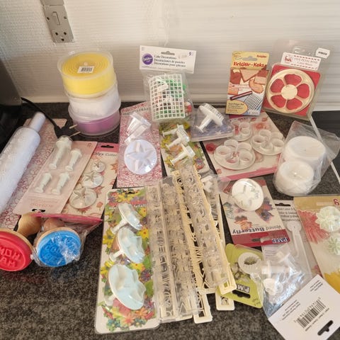 Chokoladeforme, bordskåner, ovnfade, springform, bestikbakke, og bøtter til mikroovn, samt serveringsstativ/eller krydderihylde.