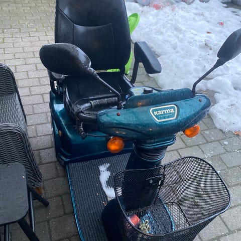 Meget velholdt el-scooter fra Karma. Model KS-737.2. Ca 3-4 år gammel. Har stået inde i garagen, når den ikke blir brugt, så meget velholdt. Kører godt. Alt virker og nøgle og oplader medfølger selvfølgelig.