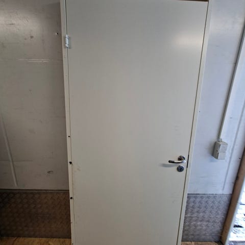 DDK indvendig dør, M7x21 (62.5 bredde og 204cm høj) i hvid overflade med monteret dørgreb og låsekasse. Døren er velegnet som indvendig rumdør i bolig, kælder eller lignende. Leveres med metalgreb og nøglehul, hængsler og beslag som vist på billederne.