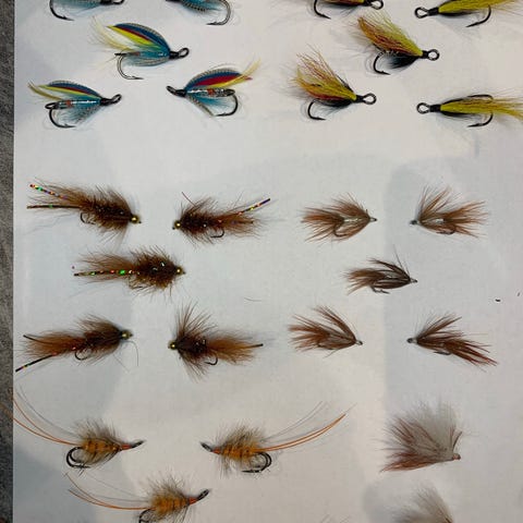 Jeg har til salg fem friske fiskefluer (fiskeagn), formet som nypher med glimt, i øjenfaldende grønt og guld foran. Stor størrelse til kyst og put-and-take. Fluerne kommer i en 5-pak, hvor de kan ligge til man skal bruge dem. De er helt nye. Den lille æske måler 5 x 5 cm.