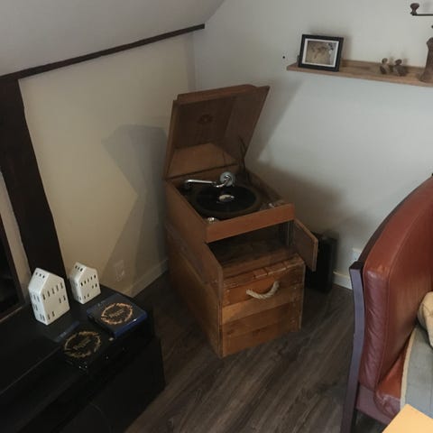 Pladespiller er fra ca 1920, det et mekanisk legetøj til børn,