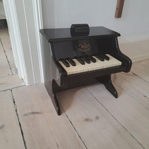 Elektronisk legetøjsflygel i pink plast med tilhørende skammel og ledningsforbundet mikrofon. Klaveret har tangenter i hvid og rød samt et kontrolpanel med flere knapper til forskellige lyde, rytmer og indbyggede melodier. Der er knapper til blandt andet volumen, tempo og valg af instrumentlyde. Egnet som musiklegetøj til børn, der vil øve simple melodier og lege sang med mikrofon.