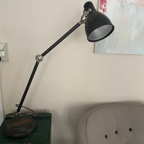 Bordlampe i god stand. Har jern fod, så står meget solidt. Kan justeres.