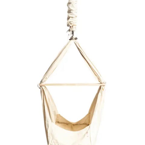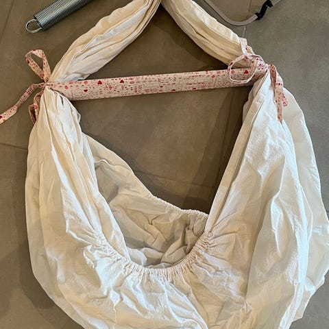 Kraftig metalfjeder med ringe i begge ender og karabinhage i den ene ende, til ophæng af slyngevugge.