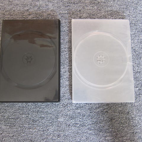 Tomme DVD kassetter 14 mm standardmål til DVD film, både lyse og sorte.