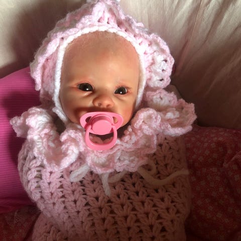 Min børneflok er blevet for stor, efter jeg selv er begyndt at lave reburn dukker, derfor sælger jeg denne søde baby.