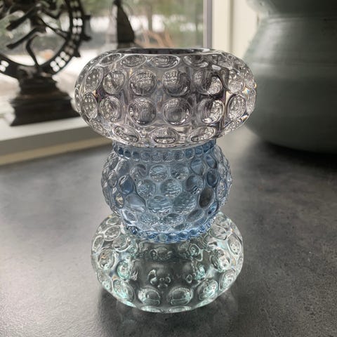 Flot og multifunktionel lysestage. Stagen kan vendes så den passer til både kronelys eller fyrfadslys. Stagen er lavet i klar glas og måler 4 cm i højden.