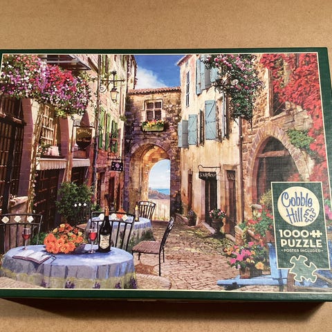 Cobble Hill Autumn puslespil med 1000 brikker. Motiv med efterårsrelaterede illustrationer af fugle, blomster og naturdetaljer.