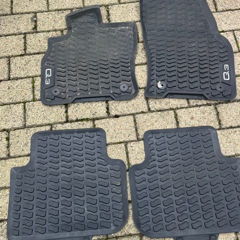 De røde måtter er helt nye de sorte mde rød skal vaskes er brugt ny pris 1300 der 2 set med exter til bag