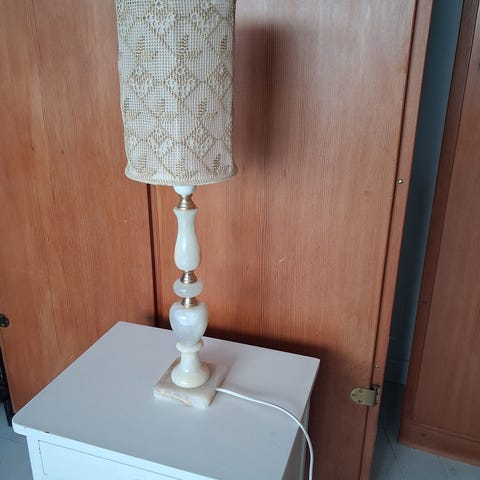 Super sød vintage lampe med små løvefødder og tilhørende skærm. Onyx marmor / messing.