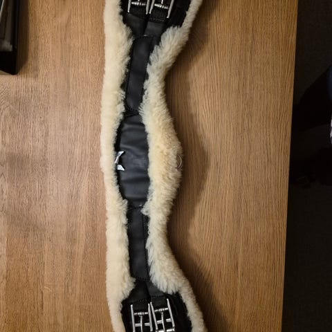Mattes Crescent gjord til hest på 60 cm. Gjorden er formet i Crescent-modellen og er udstyret med aftagelig sort lammeskindsoverdel og underlag med quiltet underside. Spænder i rustfrit stål i begge ender og D-ring til fastgørelse af hjælpetøj. Velegnet til sadler og heste, hvor der ønskes ekstra trykfordeling og komfort omkring gjordlejet.