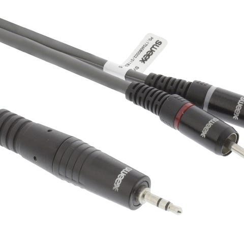 Kabel, Perfekt, 3.5mm minijack han / 3 x RCA phono hun. Rød/grøn/blå. Kan sendes