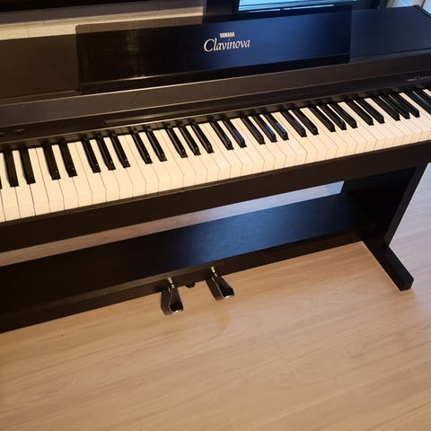 Yamaha Clavinova digitalpiano i blank poleret sort. Klaveret er velholdt og fremtræder meget flot. Begrænset brug, hjemme.