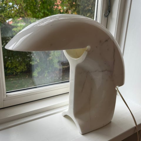 Flos bordlampe designet af Achille Castiglioni. Lampen har en grøn skærm og en cylindrisk fod i marmor. Velegnet som bord- eller skrivebordslampe i stue, soveværelse eller kontor. Klassisk italiensk design med kombination af farvet skærm og natursten, der giver et markant udtryk i indretningen.