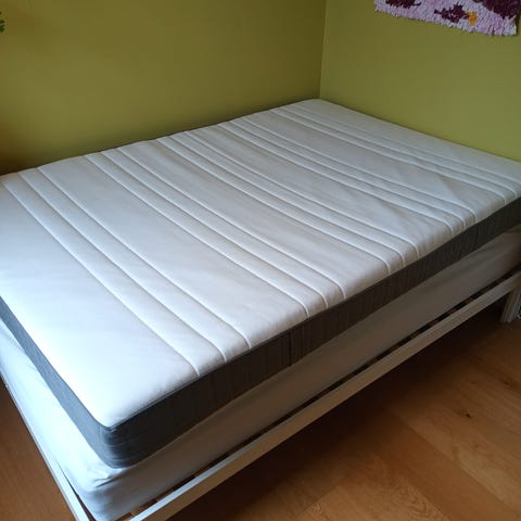 Selling my Hövag mattress in 140x200 with a cover for a symbolic 100 DKK, and can also give some sheets in white and grey with it. The mattress has a few drinking stains but not on the cover. Pick-up around Stefansgade (4th floor).