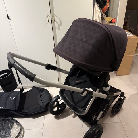 Bugaboo barnevogn med liggedel sort/brun og søskende bræt