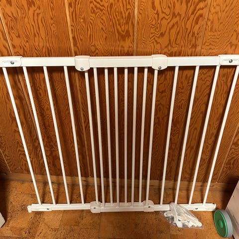 Hvid træ sikkerheds- og legehavegitter med låge