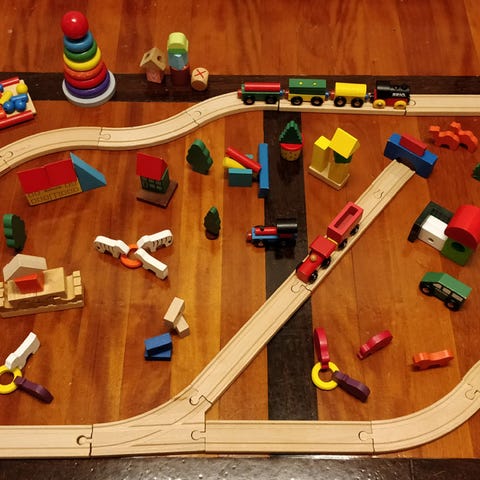 I alt 23 dele, 3 togvogne og masser af klodser, som kan stables, helt som man vil.