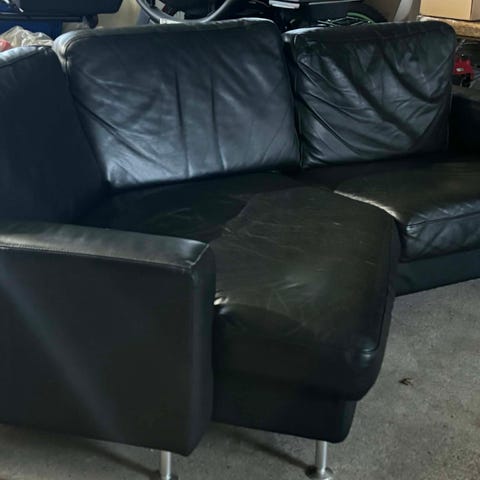 Sofaen er ikke brugt meget, men opdagede en skade på den ene side af sofaen, hvor jeg har haft et tæppe hængende. Har talt med fabrikken, som ikke kan fortælle mig hvad der er sket . Måske et barnebarn der har siddet og pillet og fået hul, ærgerligt, men som sagt med et tæppe eller op af en væg ses det ikke. Lidt dækfarve er selvfølgelig også en god ide, det følger med , er kommet fra fabrikken.