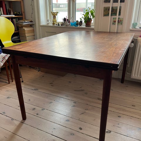 Virkelig smukt retro palisander spisebord med hollandsk udtræk. Bordet er i god stand med kun få brugsspor.