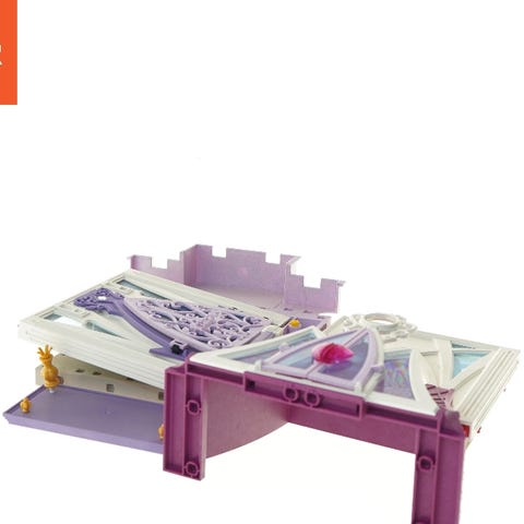 Et legesæt består primært af store plastikdele i grønne, blå og hvide nuancer. Det ser ud til at være en base eller en platform til opbygning af legetøjslandskaber eller scenarier. Det inkluderer gitterlignende strukturer og monteringspunkter, muligvis til tilslutning af andre dele eller figurer.
