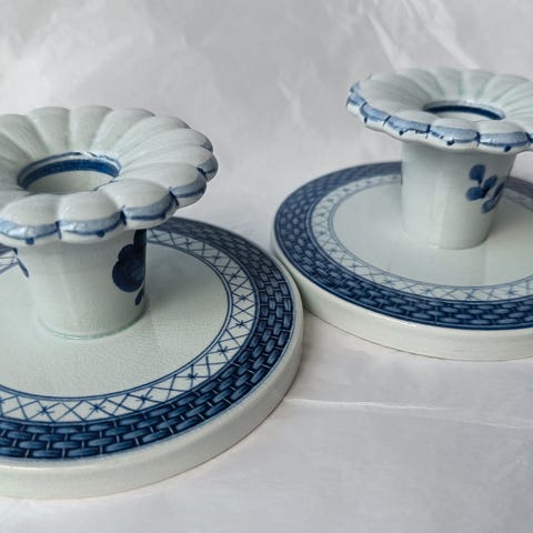 4 smukke Royal Copenhagen Tranquebar lysestager i fajance, oprindeligt designet af Christian Joachim for Aluminia i 1914