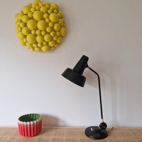 'Laboratorie-stil' Bordlampe - orange stofledning