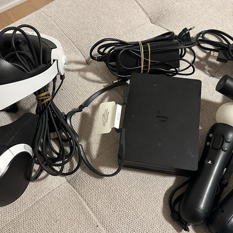 Diverse kabler og vejledninger i original emballage. Desuden følger spillet IRON MAN VR.