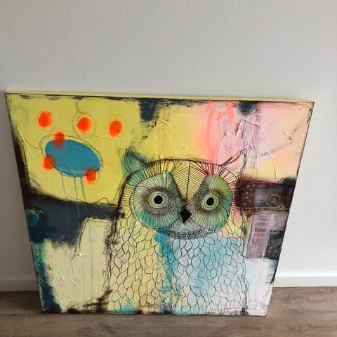 Uidentificeret kunstner maleri uglemotiv flerfarvet