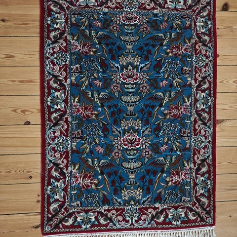 Tæppet hedder 'Rejsen til Dødsriget' og er malet på skind. Bali, 1960. Det er signeret.