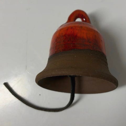 En dekorativ, blå keramisk klokke med bas-reliefmønster og gyldne detaljer. Klokken har en inskription, der refererer til Basilica di San Pietro, 1975, Roma, og viser også et motiv af basilikaen. Klokken har en diameter på 10 cm og en højde på 13 cm. Den er beregnet til dekoration og har ingen funktionel klokkefunktion.