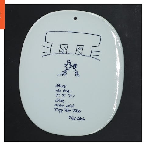 Keramisk platte med citat af Piet Hein fra Royal Copenhagen (str. 17x14 cm)