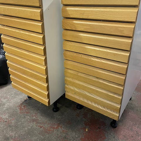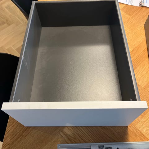 Det står rigtig pænt uden ridser eller lignende. Der medfølger 4 hylder.