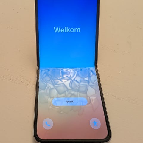 Samsung Galaxy Z Flip smartphone med 256 GB intern hukommelse. Klaptelefon-design med foldbar skærm, der kan bruges både helt åben og delvist sammenklappet. Ydre skærm til hurtig visning af tid, notifikationer og genveje samt indvendig fuldskærm til apps, spil og mediebrug. Egnet til almindelig daglig brug, sociale medier, streaming og foto/video. Understøtter typiske Android-funktioner og apps.
