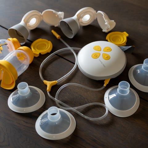 Medela Swing Maxi elektrisk brystpumpe med tilhørende flasker og tilbehør. Sættet omfatter den elektriske pumpeenhed, flere Medela-flasker med låg og flaskefødder, brysttragte, slange samt diverse smådele og reservedele som ventiler og membraner. Velegnet til udpumpning og opbevaring af modermælk i hjemmet eller på farten. Brugeren kan pumpe direkte i flaskerne og efterfølgende opbevare eller give mælken til barnet fra samme flaske. Alle dele, der er i kontakt med mælk, kan adskilles for rengøring efter producentens anvisninger.
