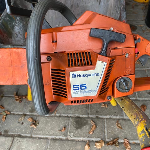 Husqvarna 435 motorsav Benzindrevet kædesav med sværd og kæde monteret. Egnet til almindeligt skov- og havearbejde som fældning og opskæring af træ.