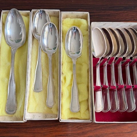 Sælger Ambrosius sovseske samt 5 teskeer. Det er Cohr Atla.