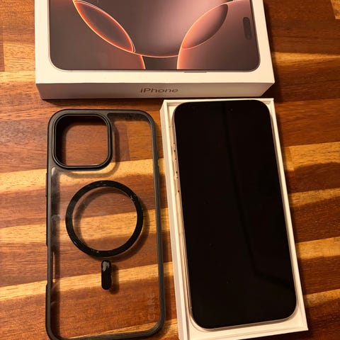 IPhone 16 pro Max Black titanium 256 gb i super stand. To Apple silikone covers medfølger. US udgave uden fysisk sim. Batteritilstand 92%